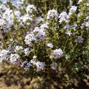 料理に使われるハーブとしてもポピュラーな「タイム」。立ち上がって上に伸びていく立性の「コモンタイム」、地面を這うように広がる匍匐性の「クリーピングタイム」などが有名ですが、一般的にタイムと言われているのは「コモンタイム」のこと。料理に使われているのも「コモンタイム」なんです。