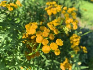 除虫菊と近縁種の「タンジー」。深緑色の葉っぱに黄色く丸いボタンのような花が印象的な多年草で、夏の花壇を爽やかに彩ってくれます。ハエやアリよけに効果があるとされていますので、摘んだ花を束にして窓際に吊るしておくと室内への虫の侵入を防止できますよ。このように優秀かつかわいらしい花姿の「タンジー」ですが、花や葉っぱすべてに毒性成分が含まれていますので直接口に入れることは厳禁。またキク科の植物にアレルギーのある方は触るだけでも炎症が起きてしまう場合がありますので、お庭に取り入れる際には十分な注意をしてくださいね。