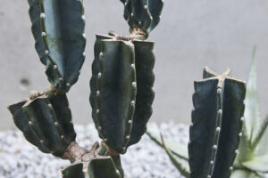 事例のサボテンを見ていただいても分かるように、途中でスパッと切れて切り口が茶色くなっているところがありますよね。これはサボテンの「胴切り」の跡なんです。育ちすぎた柱サボテンを株分けしたり、根腐れを起こしてしまった場合に必要なのがこの「胴切り」という作業。ナイフやノコギリでカットし、消毒など必要な処置を行うことで元気なサボテンを維持することができます。また、切り口の脇から新しい芽が出てきますので、それを考慮すれば自分好みの個性的な形に仕立てることもできますよ!