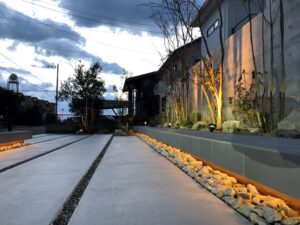 効果的なライティングがエクステリアやお庭空間を心地良く演出し、建物を含めた敷地全体を雰囲気と趣のある空間にできるということがお分かりいただけたかと思います。一邸一邸の明かりが連なることで、その街や地域全体の価値をもワンランクアップできるのがライティングの素晴らしいところ!
