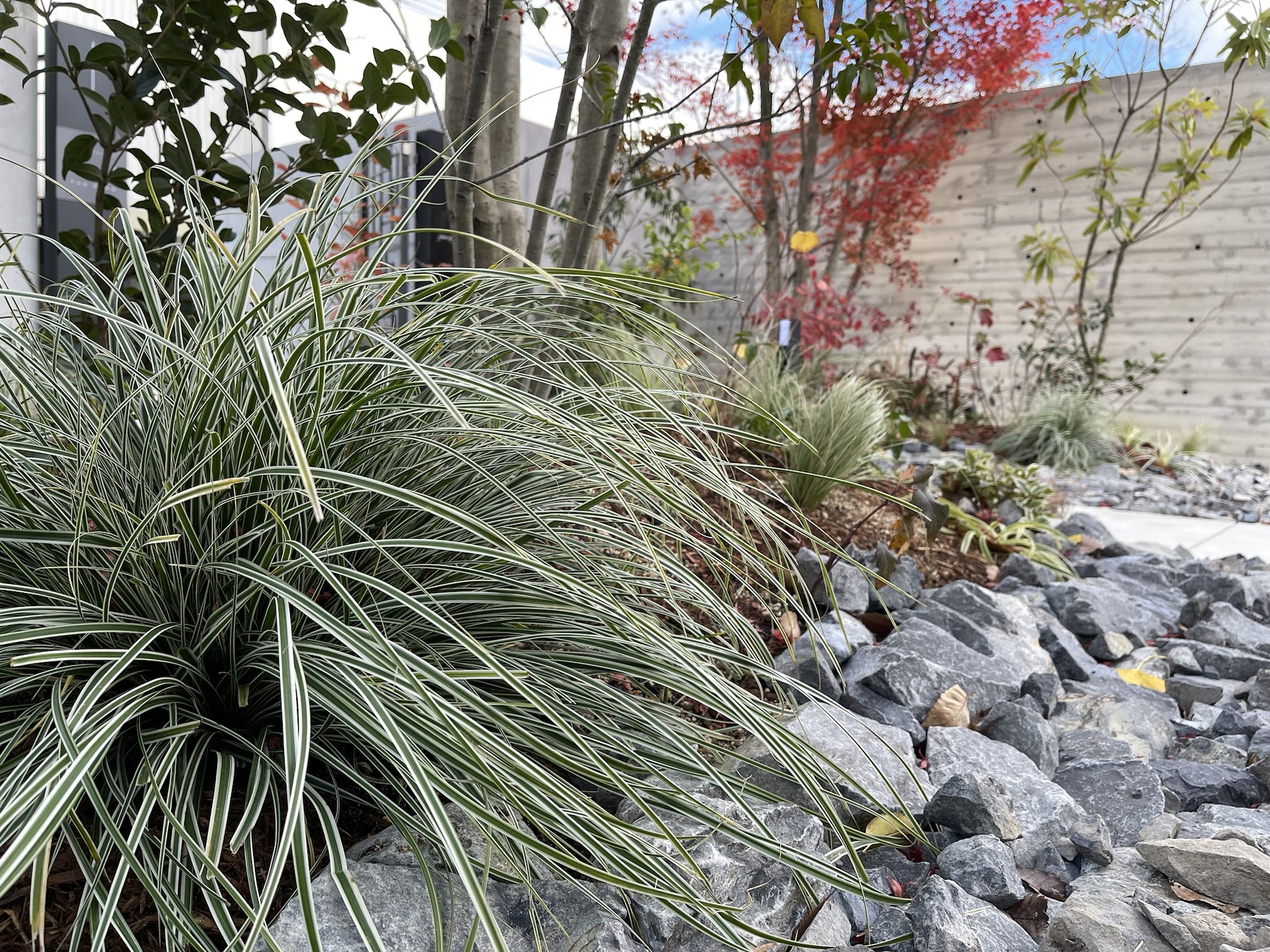 アガベやオージープランツとの相性が良い『カレックス』は、アルテデザインガーデンのお庭では欠かせません。グリーンやブラウンの風になびく細い葉が、ほどよい動きと彩を与えてくれます。