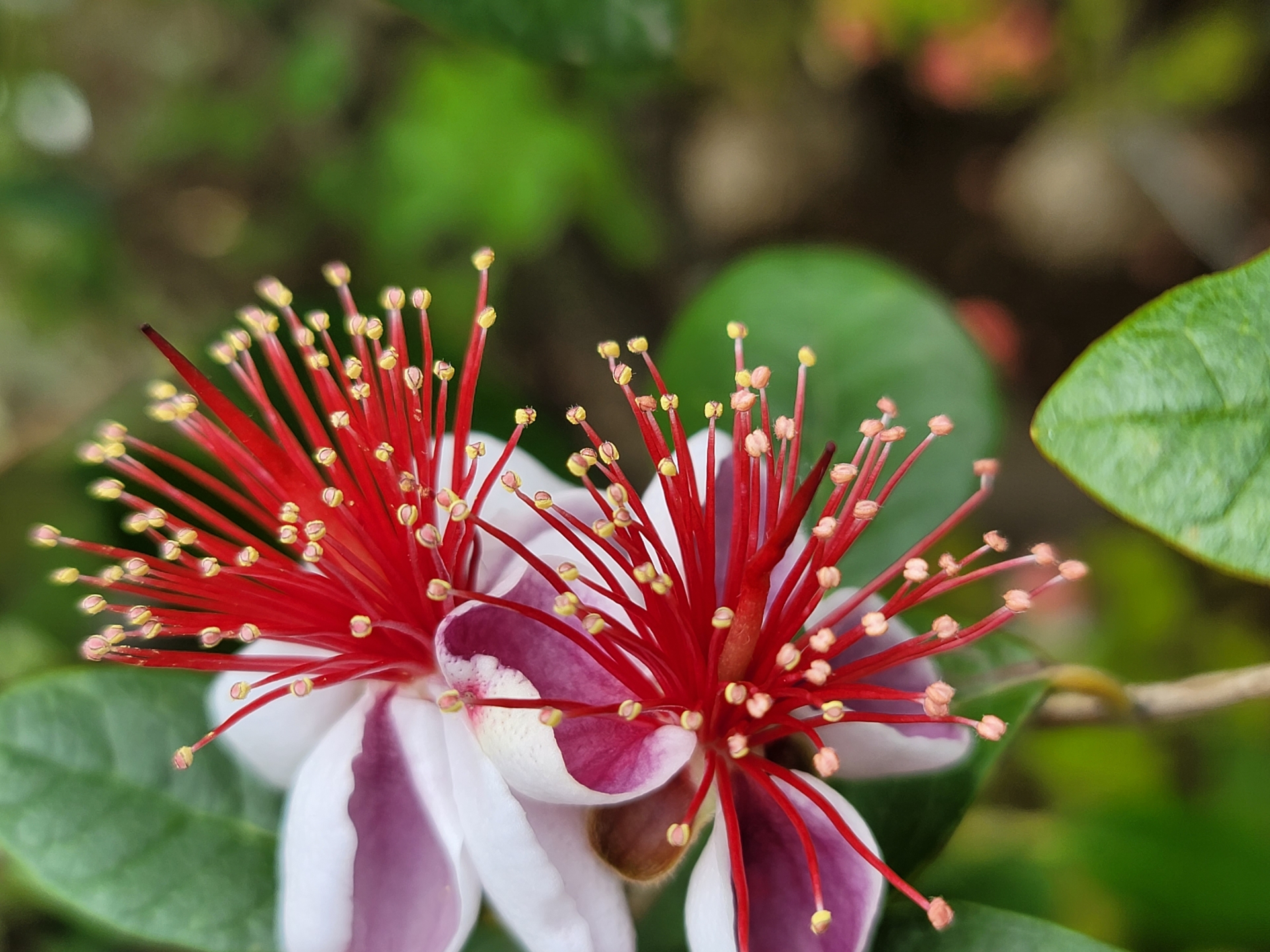 エディブルフラワー(食用花)としても楽しむ事ができるフェイジョアの花。といっても、花全体ではなく花びらのみです。真ん中の赤い花芯の部分は苦くて食べられませんので要注意!
