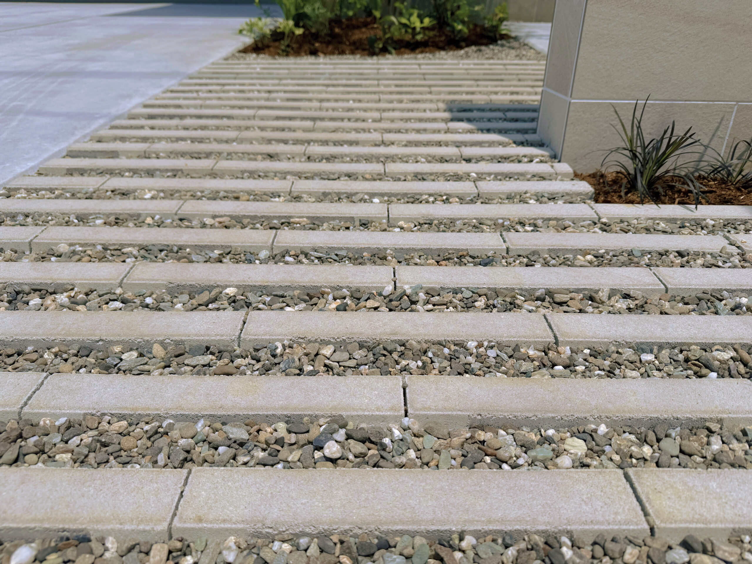 ボーダーコンクリートの間には丸みを帯びた川砂利でソフトな印象に。