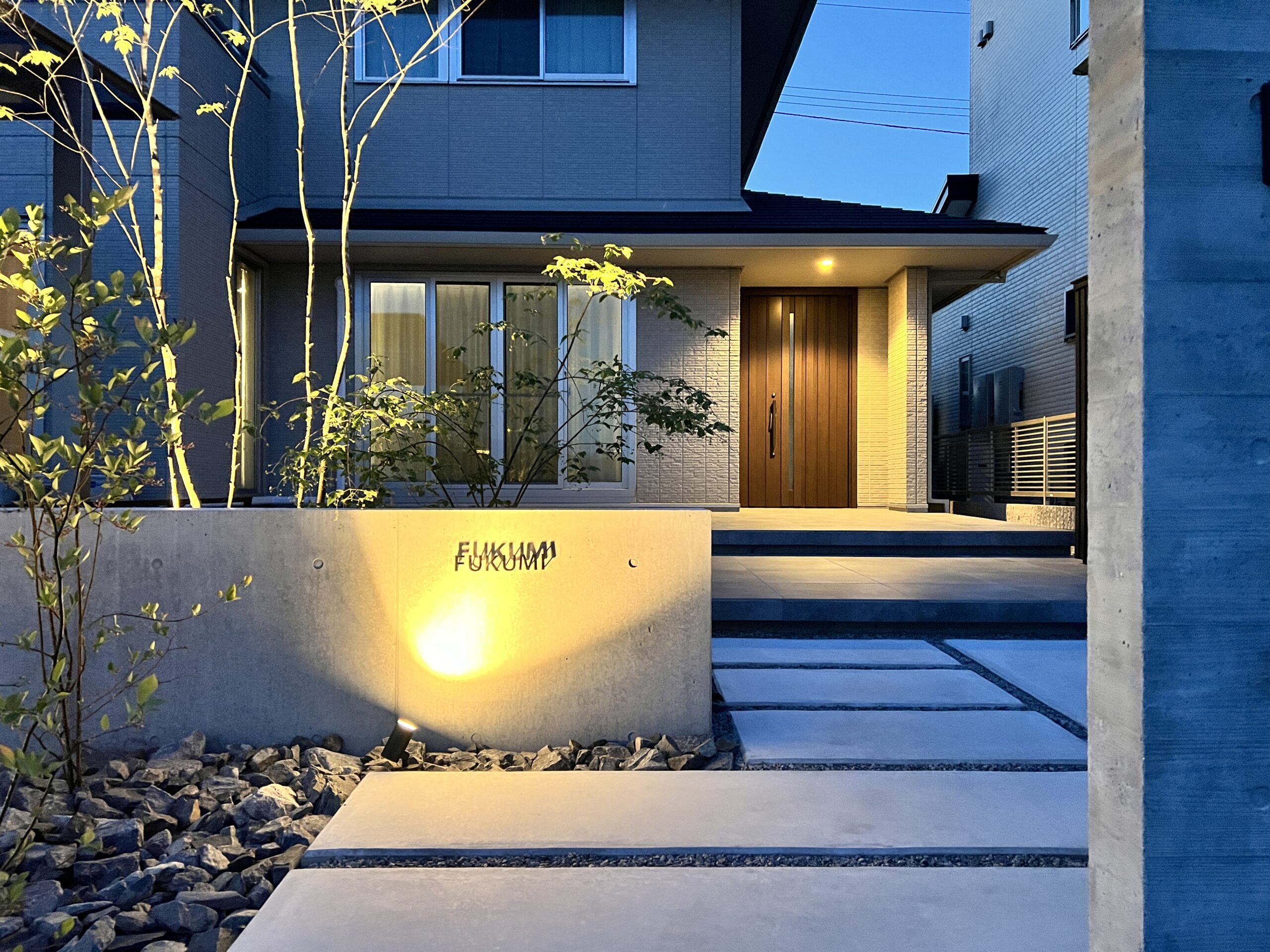 玄関へ誘導するかのようなライティング。