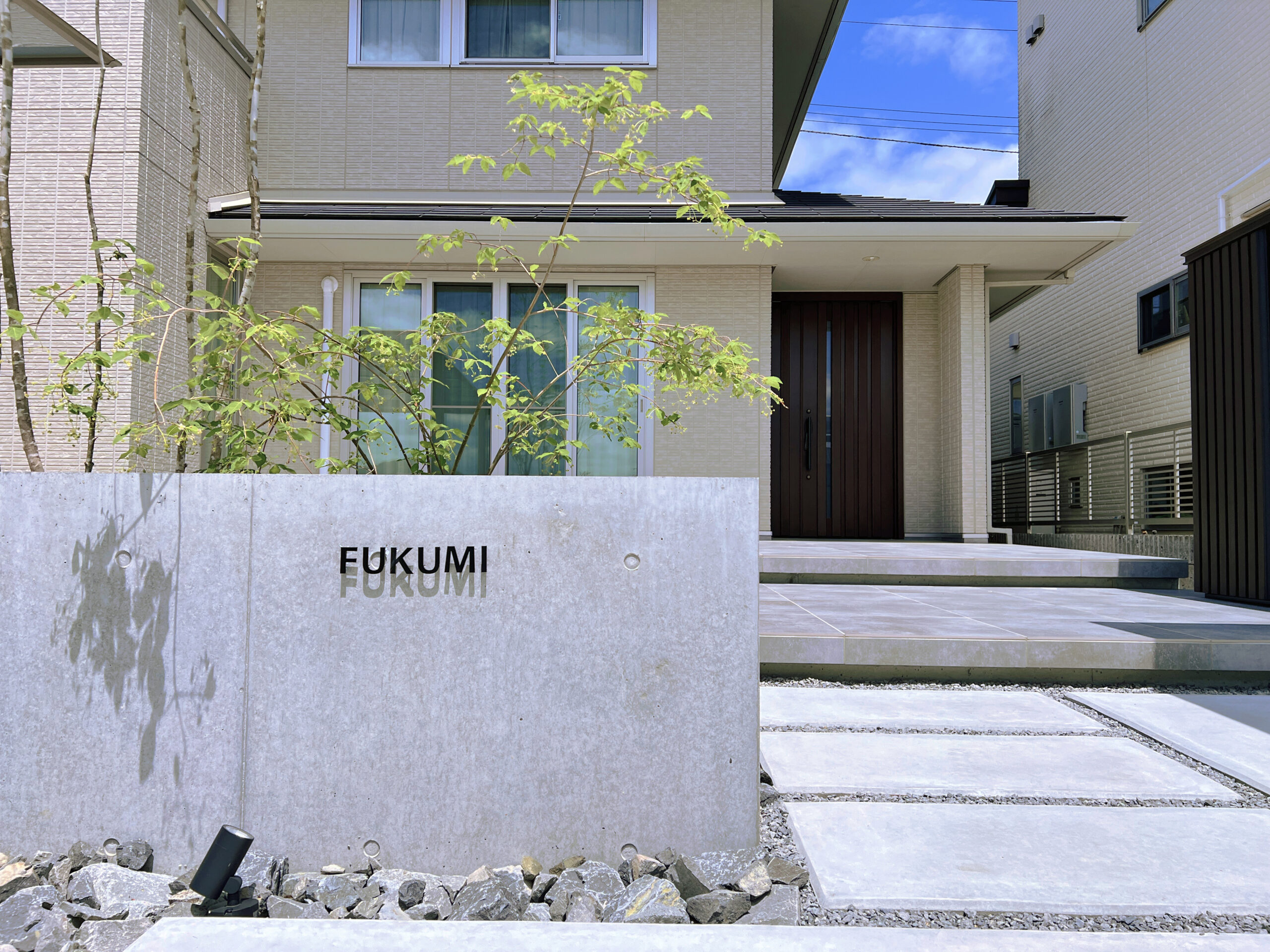 高さ70㎝のローウォールに設置したネームプレート。