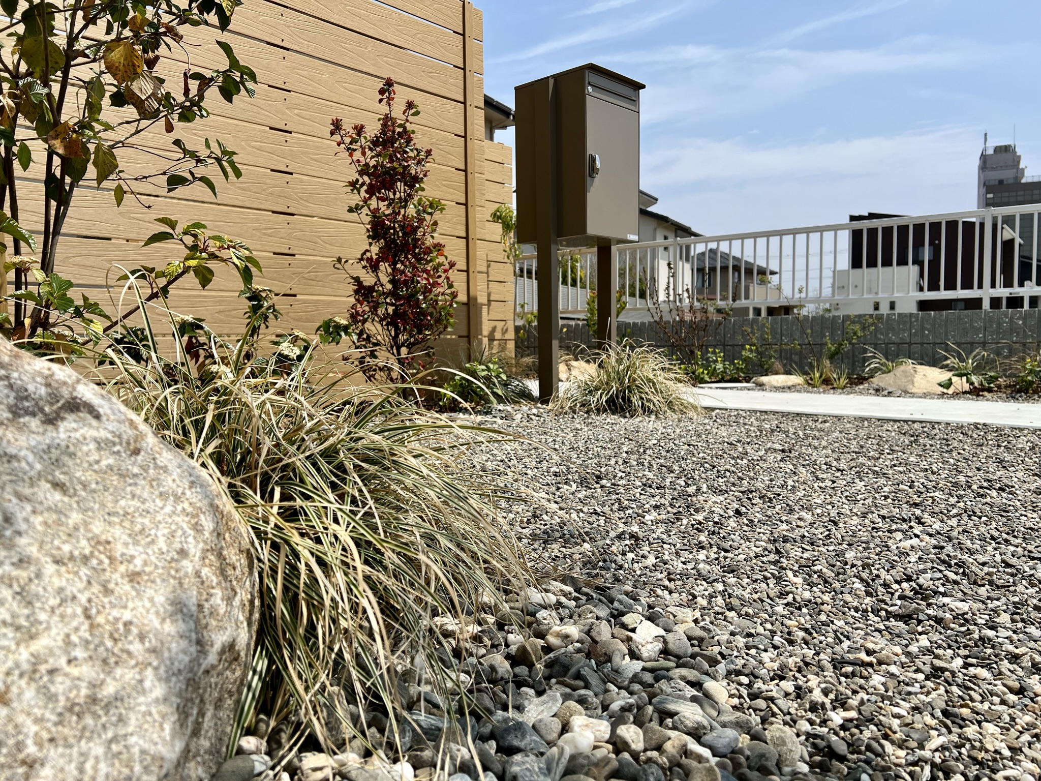 グリーンの邪魔をしないように宅配ボックスはアースカラーを選択。