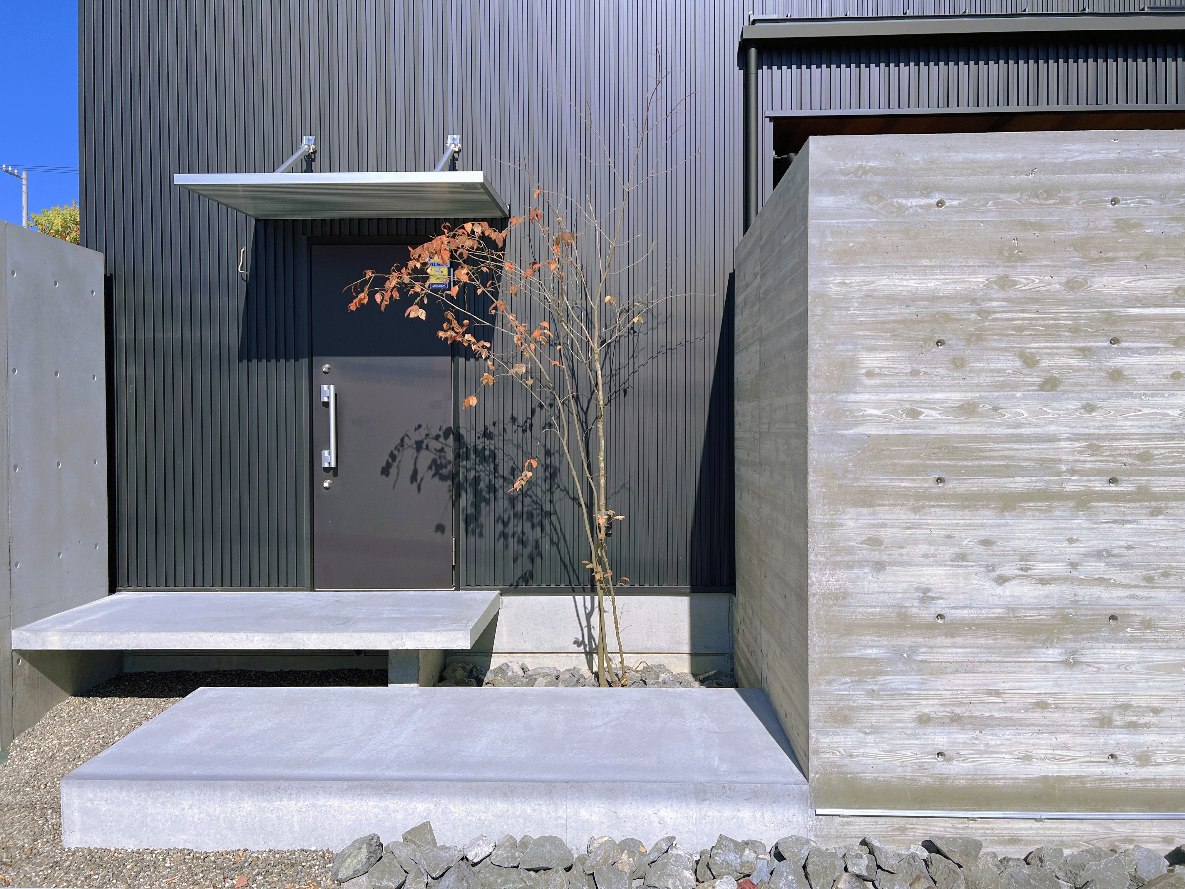 クールな印象のコンクリートウォールには、『本実杉板型枠』を採用。
