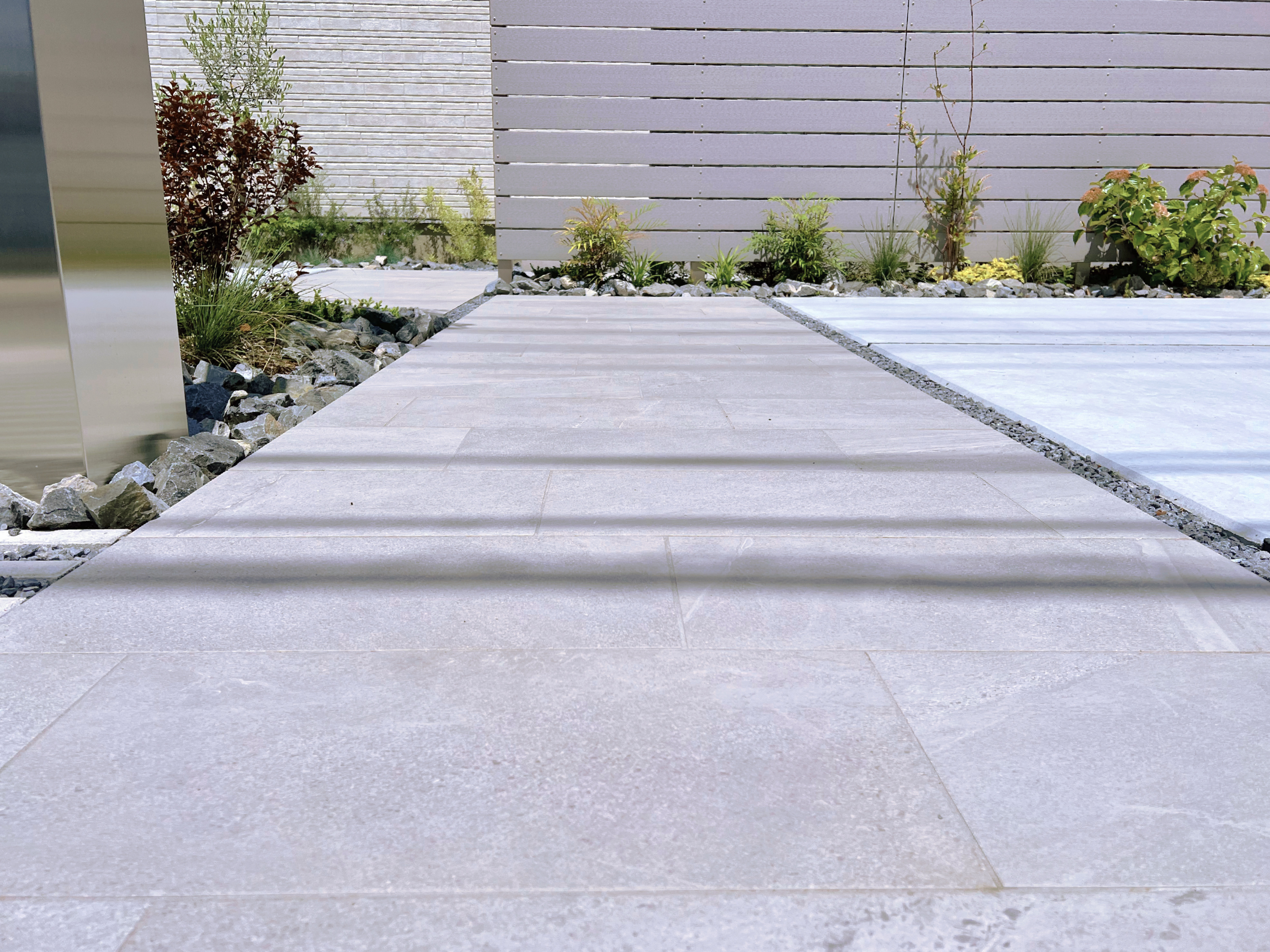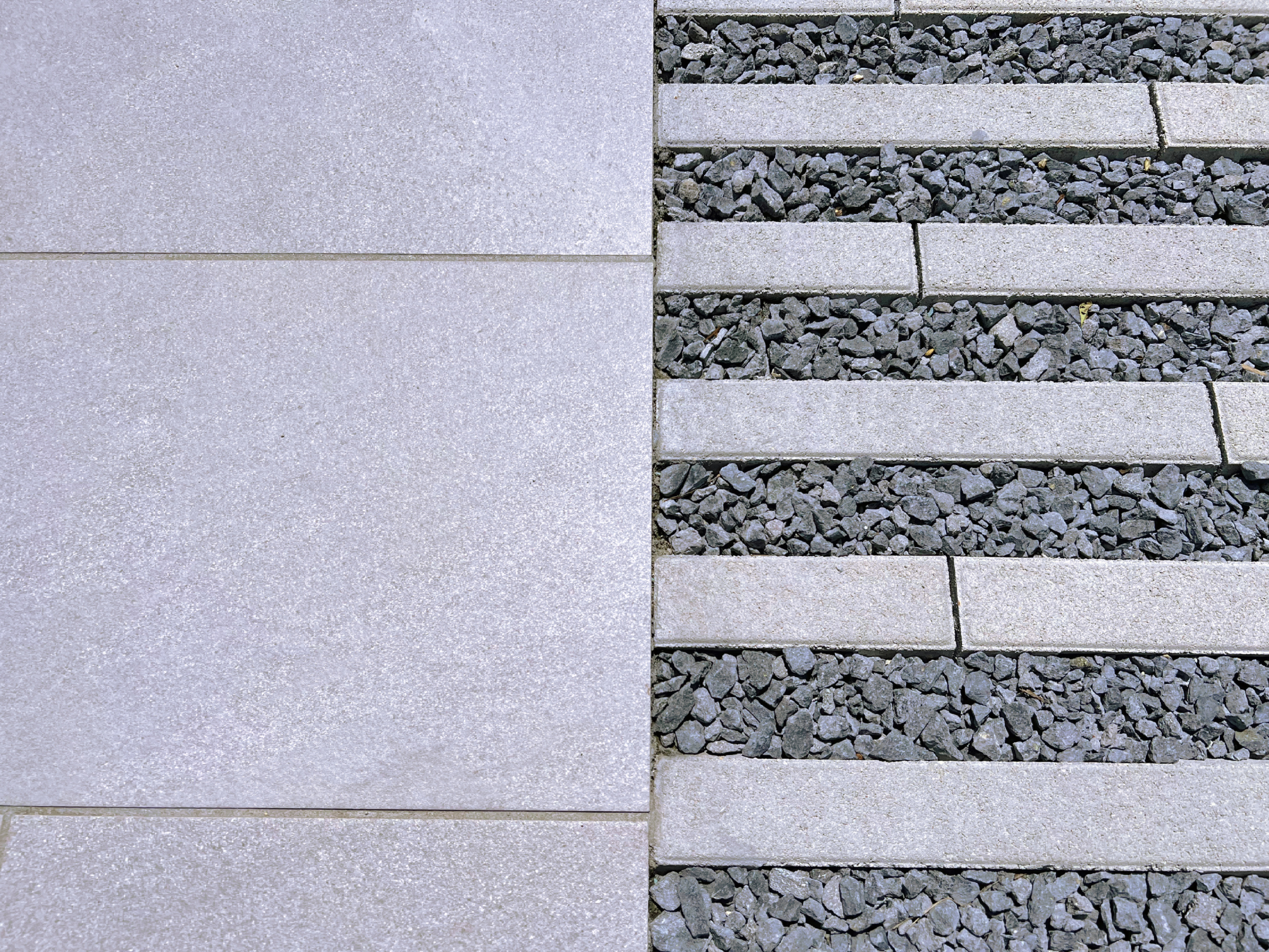 濃いめの砂利をアクセントに、グレー系でまとめております。
