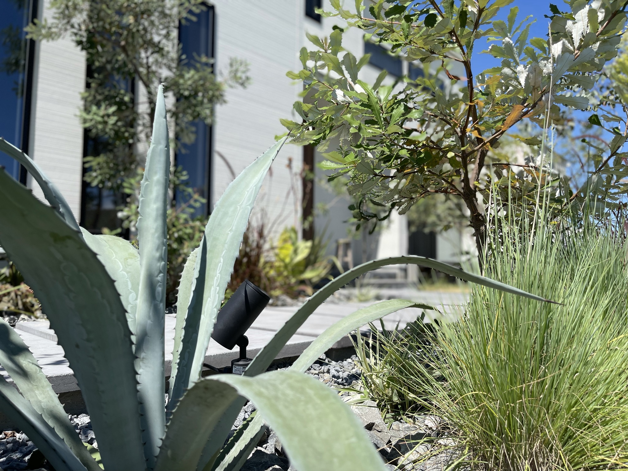手前の尖った葉っぱは『アガベ・ハクセンコウ』。