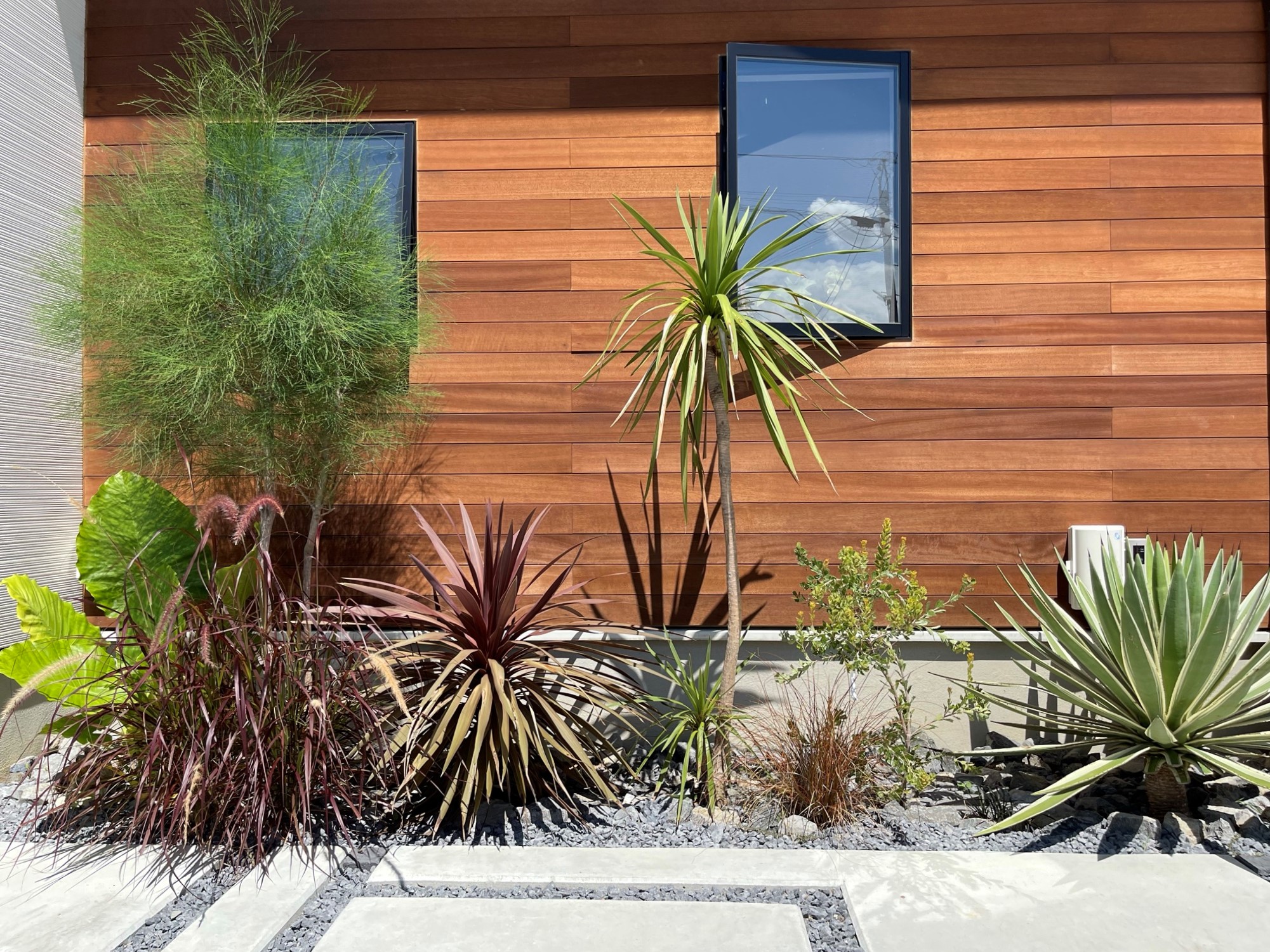 木目の外壁と植栽の葉色が道行く人の目を楽しませてくれています。