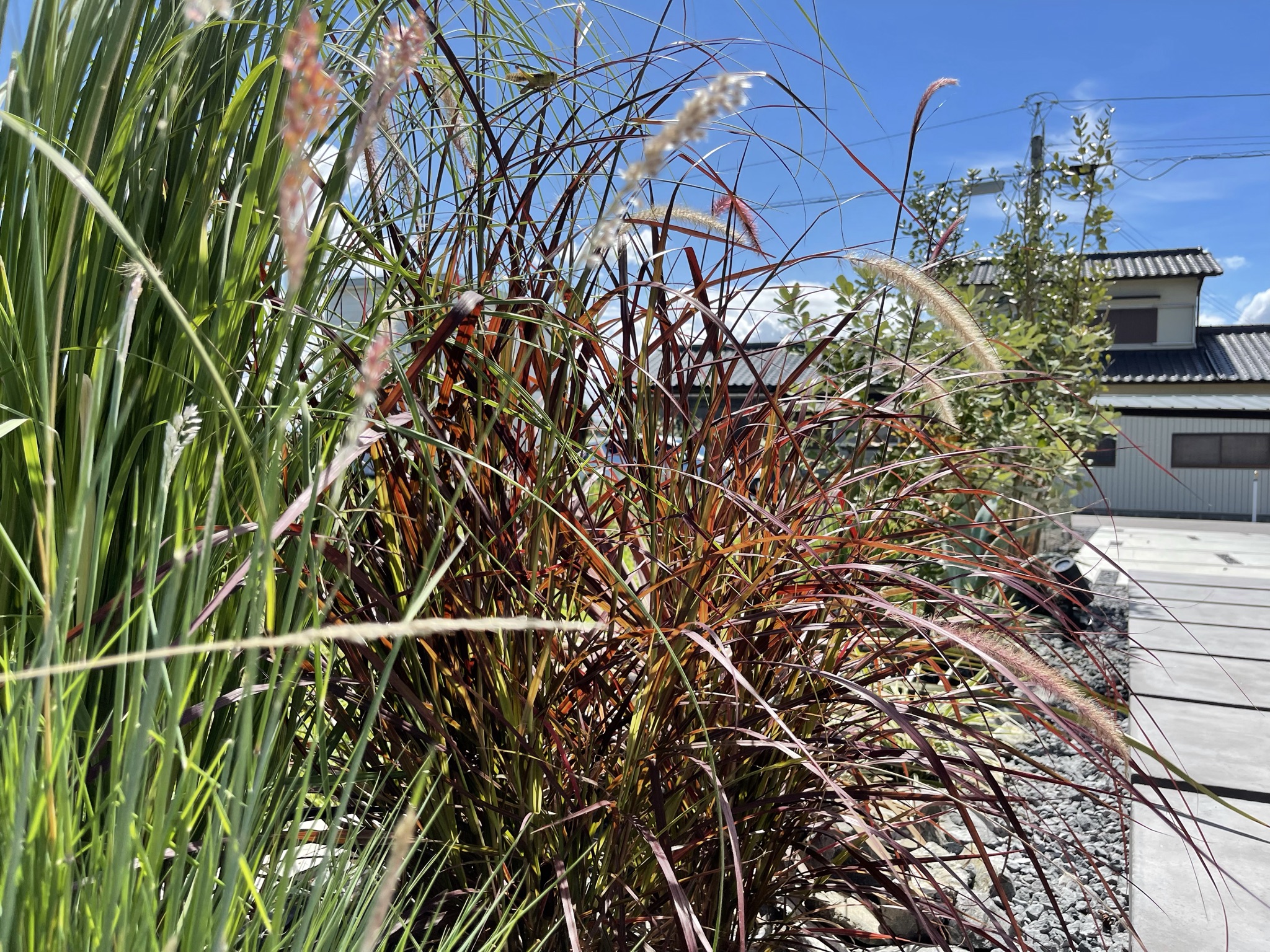 『パンパスグラス』と『ペニセタム・パープルファウンテングラス』の組合せ。