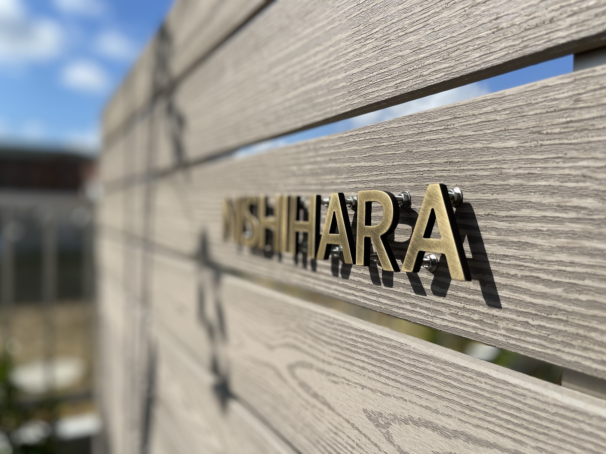真鍮製の切り文字は、時間をかけて渋みのある表情に。